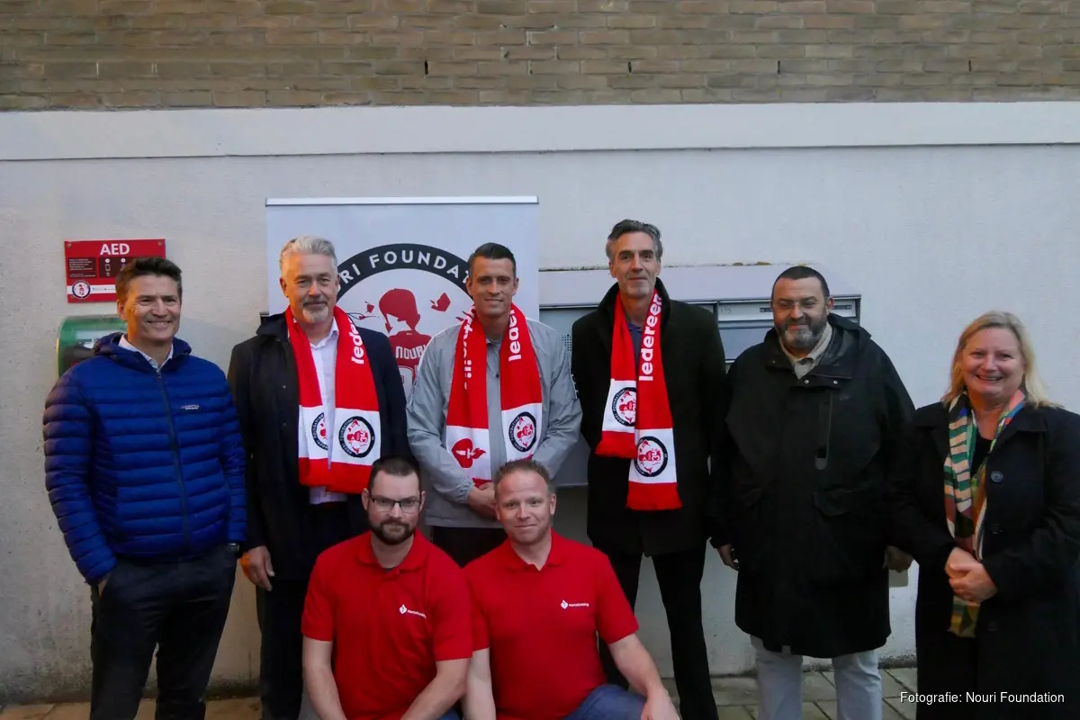 DORDRECHT - In Dordrecht is vandaag de achtste Nouri-AED onthuld – een volgende stap richting een (hart)veilig Nederland. De onthulling vond plaats aan de Beekmanstraat in de wijk De Staart, in aanwezigheid van wethouder Merx, Julian Jenner van FC Dordrecht, de familie Nouri, de Hartstichting en lokale organisaties. De Nouri-AED werd niet alleen onthuld, maar kreeg direct betekenis: jongerenwerkers en buurtsportcoaches volgden een reanimatiecursus, zodat zij daadkrachtig kunnen handelen bij een hartstilstand.